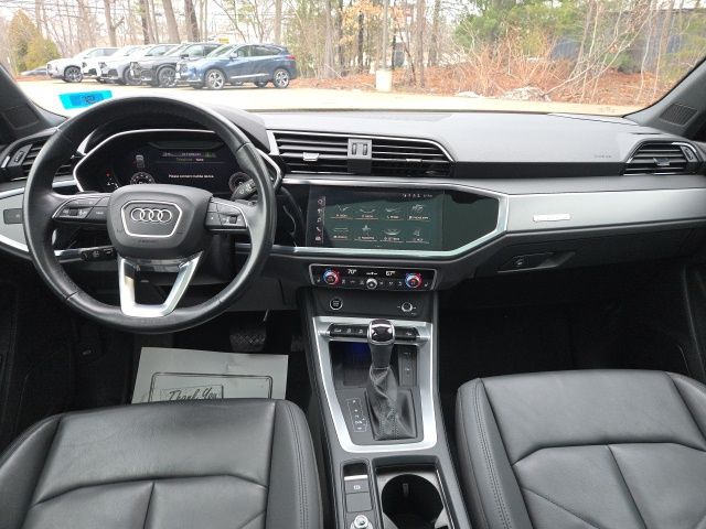 Key Acura of Portsmouth is proud to present you with another True Market Priced Pre-Owned Vehicle. Transparent Pricing Of $ 23495 !! This 2022 Audi Q3 Premium Plus S Line quattro is loaded with the following Factory Options: 10 Speakers, 3.533 Axle Ratio, 4-Wheel Disc Brakes, ABS brakes, Air Conditioning, Alloy wheels, AM/FM radio, Audi smartphone interface (Apple CarPlay/Android Auto), Auto High-beam Headlights, Automatic temperature control, Brake assist, Bumpers: body-color, Delay-off headlights, Driver door bin, Driver vanity mirror, Dual front impact airbags, Dual front side impact airbags, Electronic Stability Control, Emergency communication system: Audi connect CARE, Exterior Parking Camera Rear, Four wheel independent suspension, Front anti-roll bar, Front Bucket Seats, Front Center Armrest, Front dual zone A/C, Front fog lights, Front reading lights, Fully automatic headlights, Heated door mirrors, Heated Front Bucket Seats, Heated front seats, Illuminated entry, Knee airbag, Leather Seating Surfaces, Leather Shift Knob, Leather steering wheel, Low tire pressure warning, Occupant sensing airbag, Outside temperature display, Overhead airbag, Overhead console, Panic alarm, Passenger door bin, Passenger vanity mirror, Power door mirrors, Power driver seat, Power Liftgate, Power moonroof: Panoramic, Power passenger seat, Power steering, Power windows, Radio data system, Radio: Audi Sound System, Rain sensing wipers, Rear air conditioning, Rear anti-roll bar, Rear fog lights, Rear reading lights, Rear seat center armrest, Rear window defroster, Rear window wiper, Remote keyless entry, Speed control, Speed-sensing steering, Split folding rear seat, Spoiler, Steering wheel mounted audio controls, Tachometer, Telescoping steering wheel, Tilt steering wheel, Traction control, Trip computer, Turn signal indicator mirrors, Variably intermittent wipers, and Wheels: 18" 5-V-Spoke-S Design!!