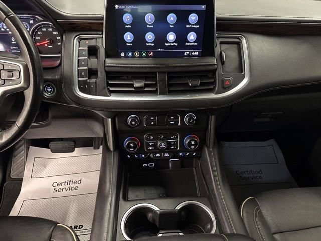 Key Chevrolet Burlington is proud to present you with another True Market Priced Pre-Owned Vehicle. Transparent Pricing Of $ 31999 !! This 2021 Chevrolet Tahoe Premier is loaded with the following Factory Options: 4WD and Jet Black Leather License Plate Front Mounting Package, Preferred Equipment Group 1LZ (1st & 2nd Row Color-Keyed Carpeted Floor Mats, 2 USB Data Ports, 2-Speed Active Electronic AutoTrac Transfer Case, 3rd Row 60/40 Power-Folding Split-Bench Seat, Auto-Dimming Inside Rear-View Mirror, Automatic Heated Steering Wheel, Bright Front & Rear Door Sill Plates, Chrome Door Handles w/Body-Color Strip, Chrome Mirror Caps, Color-Keyed Carpeting Floor Covering, Driver & Front Outboard Passenger Airbags, Dual Exhaust System, Enhanced Driver Information Center, Floor Console w/Storage Area, Front & Rear Park Assist, Hands-Free Rear Power Programmable Liftgate, HD Radio, Heated 2nd Row Outboard Seats, Hill Descent Control, Infotainment Display, Lane Change Alert w/Side Blind Zone Alert, Lane Keep Assist w/Lane Departure Warning, Leather-Wrapped Steering Wheel, LED Daytime Running Lamps, Memory Settings, Outside Heated Power-Adjustable Mirrors, Power Release 2nd Row Bucket Seats, Power Tilt & Telescopic Steering Column, Rear Cross Traffic Alert, Remote Start, Safety Alert Seat, SiriusXM NavTraffic, SiriusXM Radio w/360L, and Universal Home Remote), 4WD, Jet Black Leather, 10 Speakers, 12-Way Power Driver & Passenger Seat Adjusters, 20 x 9 Polished Aluminum Wheels, 3.23 Rear Axle Ratio, 3rd row seats: split-bench, 4-Wheel Disc Brakes, ABS brakes, Adaptive suspension, Air Conditioning, Alloy wheels, AM/FM radio: SiriusXM with 360L, Apple CarPlay/Android Auto, Auto High-beam Headlights, Auto-dimming door mirrors, Auto-dimming Rear-View mirror, Auto-leveling suspension, Automatic temperature control, Bose 10-Speaker Centerpoint Surround Audio Sys Ft, Brake assist, Bumpers: body-color, Compass, Delay-off headlights, Driver door bin, Driver vanity mirror, Dual front impact airbags, Dual front side impact airbags, Electronic Stability Control, Emergency communication system: OnStar and Chevrolet connected services capable, Four wheel independent suspension, Front anti-roll bar, Front Bucket Seats, Front Center Armrest, Front dual zone A/C, Front High-Back Reclining Bucket Seats, Front reading lights, Fully automatic headlights, Garage door transmitter, Heated & Ventilated Driver & Front Passenger Seats, Heated door mirrors, Heated Driver & Front Passenger Seats, Heated front seats, Heated rear seats, Heated steering wheel, Illuminated entry, Leather steering wheel, Low tire pressure warning, Magnetic Ride Control Suspension, Memory seat, Navigation System, Occupant sensing airbag, Outside temperature display, Overhead airbag, Overhead console, Panic alarm, Passenger door bin, Passenger vanity mirror, Perforated Leather Seat Trim, Power door mirrors, Power driver seat, Power Liftgate, Power passenger seat, Power steering, Power windows, Premium audio system: Chevrolet Infotainment 3, Radio: Chevrolet Infotainment 3 Premium System, Rain sensing wipers, Rear air conditioning, Rear anti-roll bar, Rear reading lights, Rear window defroster, Rear window wiper, Remote keyless entry, Roof rack: rails only, Security system, Speed control, Speed-sensing steering, Split folding rear seat, Spoiler, Steerin