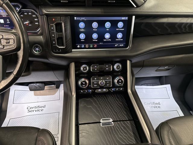 4WD. Clean CARFAX. 2021 GMC Yukon Denali Onyx Black Denali 4WD 10-Speed Automatic with Overdrive EcoTec3 6.2L V8The Best Service, The Best Selection, The Best Price...The Difference is Key!Internet advertised price includes a $500 Trade-in and $500 dealer financing incentive. Customer must trade in a vehicle to qualify for $500 trade-in incentive. Customer must use dealer supplied financing to qualify for $500 finance incentive. Odometer is 10922 miles below market average!Key Chevrolet Burlington is proud to present you with another True Market Priced Pre-Owned Vehicle. Transparent Pricing Of $ 50999 !! This 2021 GMC Yukon Denali is loaded with the following Factory Options: 4WD Advanced Security Package (Glass Breakage Sensor, Theft-Deterrent Alarm System, Vehicle Inclination Sensor, and Vehicle Interior Movement Sensor), Advanced Technology Package (Adaptive Cruise Control, Enhanced Automatic Emergency Braking, Inside Rearview Auto-Dimming Rear Camera Mirror, and Rear Camera Mirror Washer), Denali Ultimate Package (Dual-Pane Panoramic Power Sunroof, Power-Retractable Assist Steps, and Rear Seat Media System), Illumination Package (LPO) (Illuminated Front GMC Emblem (LPO) and Illuminated Mirror GMC Emblem (LPO)), Max Trailering Package (Extra Capacity Cooling System), Preferred Equipment Group 5SA (12-Way Power Seat Adjusters, 15 Diagonal Multi-Color Head-Up Display, 2 Presets For Outside Rearview Mirrors, 3rd Row 60/40 Power-Folding Split-Bench Seat, Bright Front & Rear Door Sill Plates, Chrome Door Handles w/Body-Color Strip, Dual Exhaust System, Galvano Bodyside Moldings, Hands-Free Power Programmable Rear Liftgate, HD Surround Vision, Heated & Ventilated Driver & Front Passenger Seats, Heated 2nd Row Outboard Position Seats, Heated Automatic Steering Wheel, Heated Driver & Front Passenger Seats, Hill Descent Control, Inside Rear-View Auto-Dimming Mirror, Outside Heated Power-Adjustable Mirrors, Power Release 2nd Row Bucket Seats, Power Tilt & Telescopic Steering Column, Rear Pedestrian Alert, Safety Alert Seat, and Universal Home Remote), Premium Capability Package w/Active Response 4WD (Air Ride Adaptive Suspension and Electronic Limited Slip Differential (eLSD)), 4WD, 14 Speakers, 3.23 Rear Axle Ratio, 3rd row seats: split-bench, 4-Wheel Disc Brakes, ABS brakes, Adaptive suspension, Air Conditioning, All-Weather Floor Mats, Alloy wheels, AM/FM radio: SiriusXM with 360L, Apple CarPlay/Android Auto, Auto High-beam Headlights, Auto-dimming door mirrors, Auto-dimming Rear-View mirror, Auto-leveling suspension, Automatic Emergency Braking, Automatic temperature control, Bodyside moldings, Bose 14-Speaker Surround w/CenterPoint, Brake assist, Bumpers: body-color, Compass, Delay-off headlights, Driver door bin, Driver vanity mirror, Dual front impact airbags, Dual front side impact airbags, Electronic Stability Control, Emergency communication system: OnStar and GMC connected services capable, Floor Console, Following Distance Indicator, Forward Collision Alert, Four wheel independent suspension, Front & Rear Park Assist, Front anti-roll bar, Front Bucket Seats, Front Center Armrest, Front dual zone A/C, Front fog lights, Front Pedestrian Braking, Front reading lights, Fully automatic headlights, Garage door transmitter, HD Radio, Heads-Up Display, Heated door mirrors, Heated front seats, Heated rear seats, Heated steering wheel, Hitch Guidance w/Hitch View, Illuminated entry, In-Vehicle Trailering App, Integrated Trailer Brake Controller, IntelliBeam Automatic High Beam On/Off, Jet Black Interior Trim, Lane Change Alert w/Side Blind Zone Alert, Lane Keep Assist w/Lane Departure Warning, Leather steering wheel, Low tire pressure warning, Magnetic Ride Control Suspension, Memory seat, Navigation System, Occupant sensing airbag, Outside temperature display, Overhead airbag, Overhead console, Panic alarm, Passenger door bin, Passenger vanity mirror, Perforated Leather Seating Surfaces, Power door mir