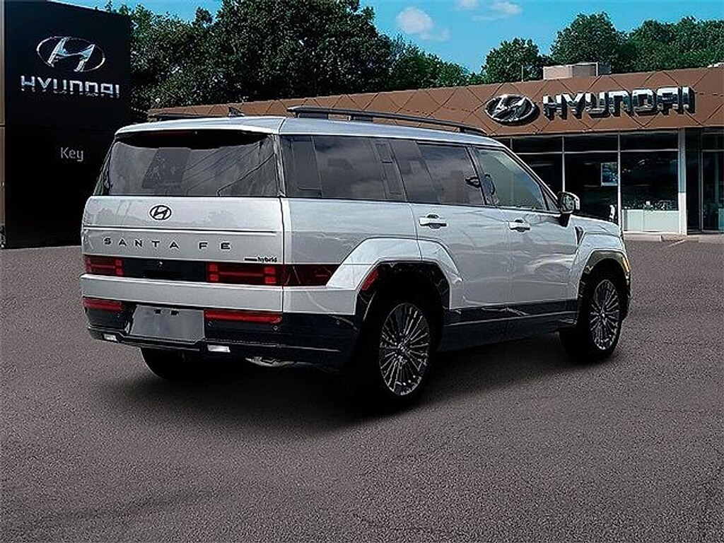 "Retired Service Loaner Hyundai Certified Pre Owned I4 Apple CarPlay & Android Auto Heated & Ventilated Front Bucket Seats Power Liftgate Power moonroof.This Santa Fe Hybrid Calligraphy is nicely equipped with Option Group 01 I4 Apple CarPlay & Android Auto Heated & Ventilated Front Bucket Seats Power Liftgate Power moonroof 12 Speakers 3rd row seats: bench 4-Wheel Disc Brakes ABS brakes Air Conditioning AM/FM radio: SiriusXM Auto High-beam Headlights Auto-dimming Rear-View mirror Automatic temperature control Brake assist Bumpers: body-color Cargo Tray Carpeted Floor Mats Delay-off headlights Dual front impact airbags Dual front side impact airbags Electronic Stability Control Emergency communication system Exterior Parking Camera Rear First Aid Kit Four wheel independent suspension Front anti-roll bar Front Center Armrest Front dual zone A/C Fully automatic headlights Garage door transmitter: HomeLink Heads-Up Display Heated door mirrors Heated rear seats Heated steering wheel Knee airbag Leather steering wheel Low tire pressure warning Memory seat Mudguards Navigation System Occupant sensing airbag Overhead airbag Panic alarm Power door mirrors Power driver seat Power passenger seat Power steering Power windows Premium Nappa Leather Seat Trim Radio: AM/FM/HD Bose Premium Audio System Rain sensing wipers Rear anti-roll bar Rear side impact airbag Rear window defroster Rear window wiper Remote keyless entry Roadside Assistance Kit Security system Speed control Speed-sensing steering Split folding rear seat Spoiler Steering wheel mounted audio controls Telescoping steering wheel Tilt steering wheel Traction control Transverse Panel Turn signal indicator mirrors Variably intermittent wipers and Wheels: 20""x 8.5J Unique Dark Finish Alloy.Clean CARFAX.2025 Hyundai Santa Fe Hybrid Calligraphy 4D Sport Utility Shimmering Silver Calligraphy I4 6-Speed Automatic with Shiftronic AWDCall 603-841-3099 to schedule your contact free test drive today!"