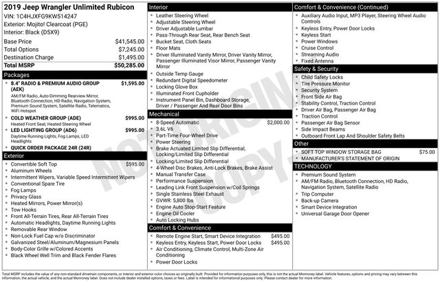 2019 Jeep Wrangler Unlimited Rubicon Mojito! Clearcoat Unlimited Rubicon 4D Sport Utility 3.6L V6 24V VVT 8-Speed Automatic 4WD