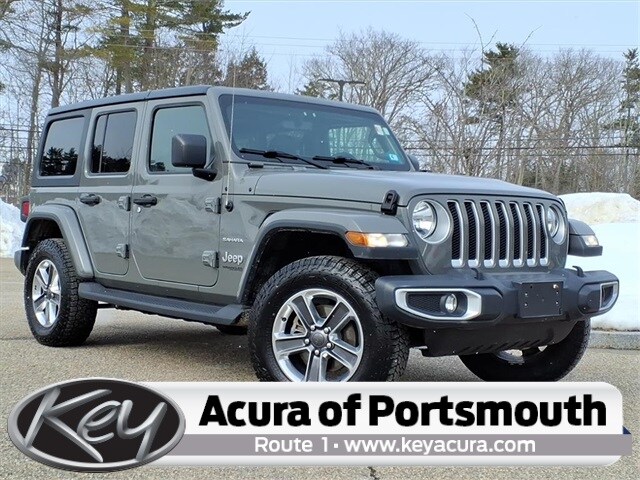 Key Acura of Portsmouth is proud to present you with another True Market Priced Pre-Owned Vehicle. Transparent Pricing Of $ 25499 !! This 2021 Jeep Wrangler Unlimited Sahara is loaded with the following Factory Options: 8.4" Radio & Premium Audio Group (1-Year SiriusXM Guardian Trial, 4G LTE Wi-Fi Hot Spot, 5-Year SiriusXM Traffic Service, 5-Year SiriusXM Travel Link Service, 8.4" Touchscreen Display, Alpine Premium Audio System, Auto-Dimming Rear-View Mirror, Emergency/Assistance Call, For Details, Visit DriveUconnect.com, GPS Navigation, HD Radio, Radio: Uconnect 4C Nav w/8.4" Display, SiriusXM Traffic Plus, and SiriusXM Travel Link), Cold Weather Group (Heated Front Seats and Heated Steering Wheel), Quick Order Package 22G, 3.45 Rear Axle Ratio, 4-Wheel Disc Brakes, 8 Speakers, ABS brakes, Air Conditioning, Alloy wheels, AM/FM radio: SiriusXM, Apple CarPlay, Apple CarPlay/Android Auto, Automatic temperature control, Aux Battery, Black 3-Piece Hard Top, Brake assist, Cloth Low-Back Bucket Seats, Compass, Delay-off headlights, Driver door bin, Driver vanity mirror, Dual front impact airbags, Dual front side impact airbags, Electronic Stability Control, Freedom Panel Storage Bag, Front anti-roll bar, Front Bucket Seats, Front Center Armrest w/Storage, Front dual zone A/C, Front fog lights, Front License Plate Bracket, Front reading lights, Fully automatic headlights, Garage door transmitter, Google Android Auto, GPS Antenna Input, Heated door mirrors, Heavy Duty Suspension w/Gas Shocks, Illuminated entry, Integrated roll-over protection, Integrated Voice Command w/Bluetooth, Leather steering wheel, Low tire pressure warning, No Soft Top, Non-Lock Fuel Cap w/o Discriminator, Occupant sensing airbag, Outside temperature display, Panic alarm, ParkView Rear Back-Up Camera, Passenger door bin, Passenger vanity mirror, Power door mirrors, Power steering, Power windows, Radio data system, Radio: Uconnect 4 w/7" Display, Rear anti-roll bar, Rear reading lights, Rear Window Defroster, Rear Window Wiper/Washer, Remote keyless entry, Remote Start System, Security system, Speed control, Split folding rear seat, Steering wheel mounted audio controls, Stop-Start Dual Battery System, Tachometer, Telescoping steering wheel, Tilt steering wheel, Traction control, Trip computer, Variably intermittent wipers, Voltmeter, and Wheels: 18" x 7.5" Polished w/Gray Spokes!!