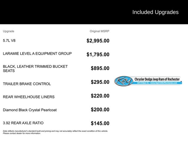 Key Chrysler Dodge Jeep Ram Newcastle is proud to present you with another True Market Priced Pre-Owned Vehicle. Transparent Pricing Of $ 37499 !! This 2022 Ram 1500 Laramie is loaded with the following Factory Options: Laramie Level An Equipment Group (DISC) (Auto High Beam Headlamp Control, Foam Bottle Insert (Door Trim Panel), ParkSense Front/Rear Park Assist w/Stop, Rain Sensitive Windshield Wipers, Rear 60/40 Folding Split Recline Seat, and Remote Tailgate Release), Quick Order Package 27H Laramie, #1 Seat Foam Cushion, 10 Speakers, 2nd Row In Floor Storage Bins, 3 Rear Seat Head Restraints, 4 Way Front Headrests, 4-Wheel Disc Brakes, 48V Belt Starter Generator, 4G LTE Wi-Fi Hot Spot, 8.4" Touchscreen Display, ABS brakes, Adjustable pedals, Air Conditioning, Alloy wheels, AM/FM radio: SiriusXM, Apple CarPlay, Apple CarPlay/Android Auto, Audio memory, Auto-dimming door mirrors, Auto-Dimming Exterior Driver Mirror, Auto-dimming Rear-View mirror, Automatic temperature control, Brake assist, Bumpers: chrome, Chrome Exterior Mirrors, Compass, Connectivity - US/Canada, Convex Wide-Angle Mirror Insert, Delay-off headlights, Driver door bin, Driver Seat Memory, Driver vanity mirror, Dual front impact airbags, Dual front side impact airbags, Electronic Stability Control, Exterior Mirrors Courtesy Lamps, Exterior Mirrors w/Heating Element, Exterior Mirrors w/Memory, Exterior Mirrors w/Supplemental Signals, For Details, Visit DriveUconnect.com, Front anti-roll bar, Front Center Armrest w/Storage, Front dual zone A/C, Front fog lights, Front License Plate Bracket, Front reading lights, Front Seat Back Map Pockets, Front wheel independent suspension, Fully automatic headlights, Garage door transmitter, Global Telematics Box Module (TBM), Google Android Auto, GPS Antenna Input, Heated door mirrors, Heated Front Seats, Heated Front seats, Heated Steering Wheel, Heated steering wheel, Heavy-Duty Engine Cooling, Illuminated entry, Integrated Center Stack Radio, Leather steering wheel, Leather Trim 40/20/40 Bench Seat, Low tire pressure warning, Manufacturer's Statement of Origin, Memory seat, Occupant sensing airbag, Outside temperature display, Overhead airbag, Overhead console, Panic alarm, ParkView Rear Back-Up Camera, Passenger door bin, Passenger vanity mirror, Pedal memory, Power 2-Way Driver Lumbar Adjust, Power 2-Way Passenger Lumbar Adjust, Power 8-Way Driver & Passenger Seats, Power door mirrors, Power driver seat, Power passenger seat, Power steering, Power windows, Power-Folding Mirrors, Radio data system, Radio: Uconnect 5 W w/8.4" Display, Rear 60/40 Folding Seat, Rear anti-roll bar, Rear seat center armrest, Rear step bumper, Rear Wheelhouse Liners, Rear window defroster, Remote keyless entry, Security system, SiriusXM Radio Service, Speed control, Split folding rear seat, Steering wheel mounted audio controls, Tachometer, Telescoping steering wheel, Tilt steering wheel, Traction control, Trailer Brake Control, Trip computer, Turn signal indicator mirrors, Variably intermittent wipers, Ventilated Front Seats, Ventilated front seats, Voltmeter, and Wheels: 18" x 8" Aluminum Base Painted!!